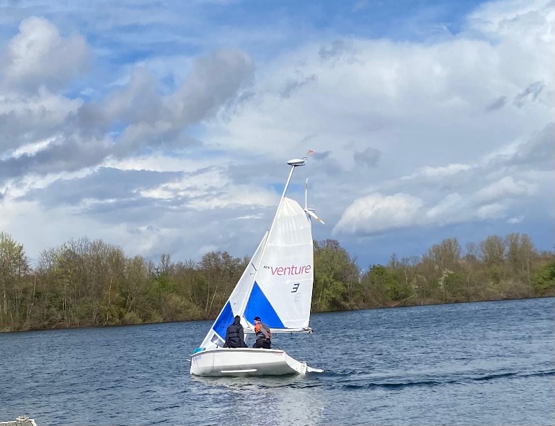 Im Focus stand das Auftakeln der Venture, Wiederholen aller Funktionen. Erklären all der „Leinen, die da so rumbaumeln“.Es zeigte sich, dass über die Wintermonate so Manches in Vergessenheit geraten ist.Insbesondere das Wissen um das richtige Reffen, so wie es der Rigging Guide vorsieht. Schließlich kann man die Venture auch während des Segelns reffens/ausreffens.Anhand von Bildern konnte das „Reffgeheimnis“ im Baum gelüftet werden. Wer weiß schon, wieso vorn am Baum 2 Leinen herauskommen und hinten 1?(Unser Obmann musste nicht nur 1-mal in 2023 die Reffleinen aus dem Baum holen.) Und bei dem Wind war Reffen auch angesagt.Es gab aber auch Phasen ohne Starkwind. Also wurde das Aufriggen des Gennakers auch gleich geübt.Lehre: Am Anfang der Saison sollte eine solche Wiederholung/ Einweisung stehen. (Schon mal vorgemerkt!). Schließlich kann man nie genug üben.